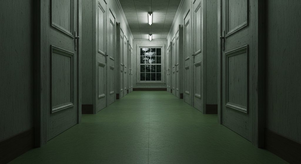 この場所が「まゆみの部屋」として固定されたのは、単に角部屋で死角が多かったからだけではないようです。避難経路の確認で廊下の端まで行く際、誰ともなく「ここがそうだ」と指を差したことが始まりかもしれません。実際のところ、集団生活の中で最も「端」にある部屋は、心理的に孤立しやすく、不審な影や音が報告されやすい傾向にあります。3階という高さも、外からの侵入が不可能であるはずなのに「誰かに覗かれている」という矛盾した恐怖を生む絶妙な条件となっていました。